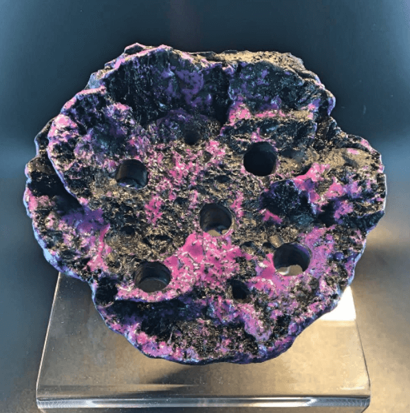 Modeled off montipora coral this 5 inch diameter magnetic shelf has 5 frag plug holes!