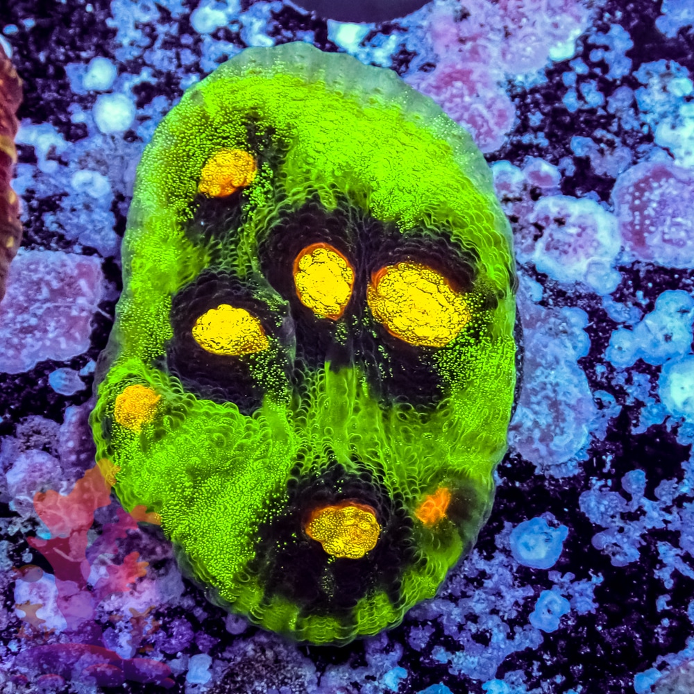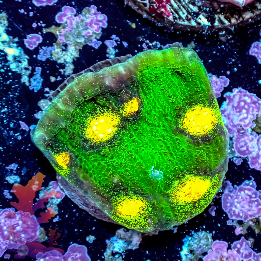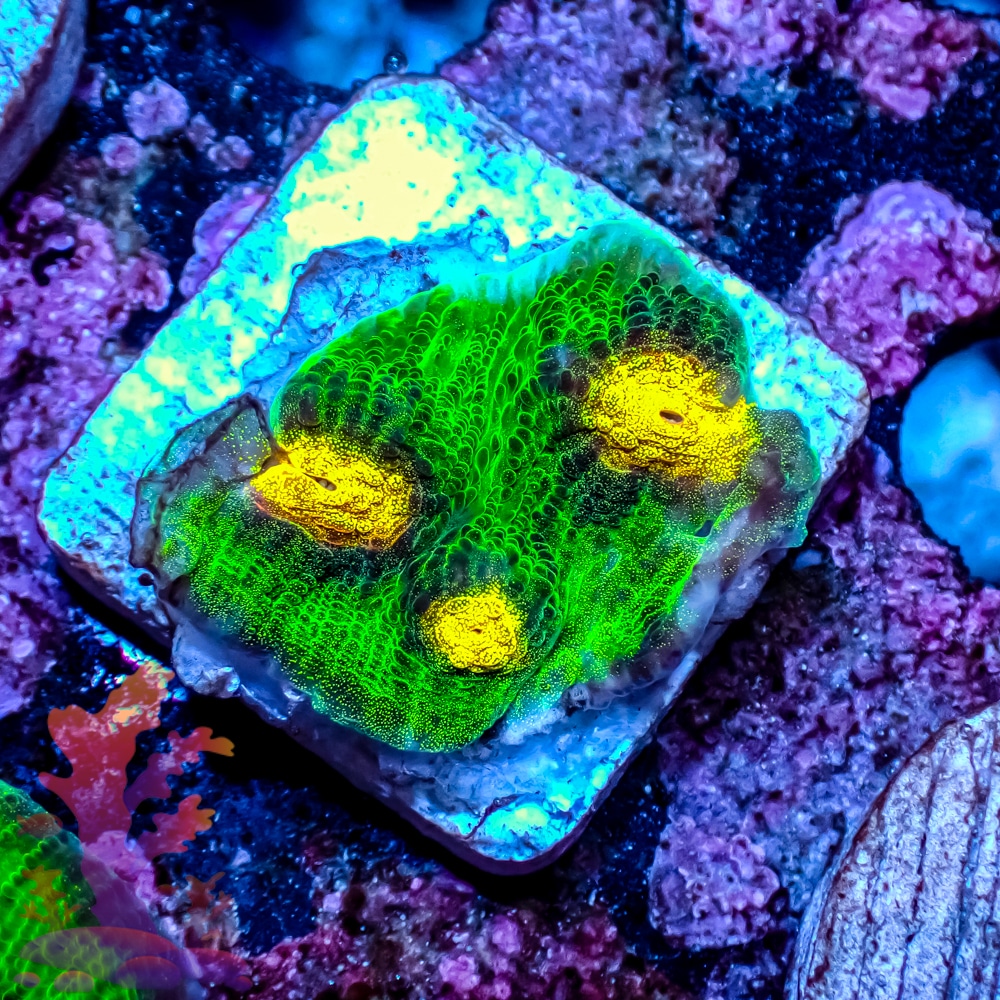 Please Note: These are stock photos of representative LPS corals and meant to illustrate color and form. You will receive a frag of similar size and health—but exact coloration, polyp extension, or skeletal structure may vary. For precise selections, browse our WYSIWYG corals.